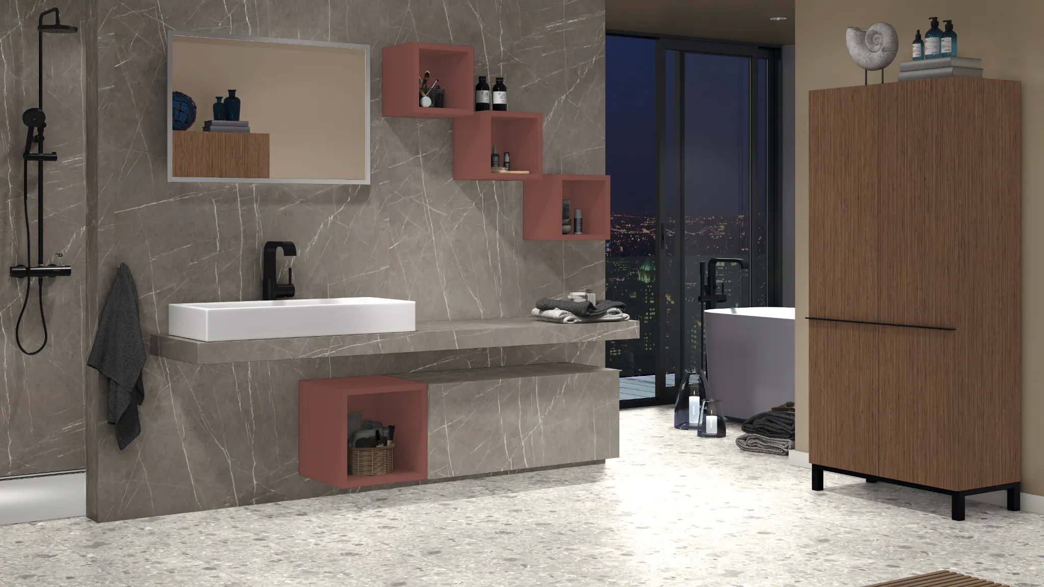 Τα μονόχρωμα σχέδια με κοκκινωπή εμφάνιση είναι προς το παρόν πολύ δημοφιλή, καθώς προσφέρουν οικειότητα και ιδιωτικότητα στον χώρο. Μπορεί να είναι ιδιαίτερα συναρπαστικό, ιδίως σε γραφεία νέου τύπου ‘New Work’ ή στη σχεδίαση ξενοδοχειακών μονάδων. Το σχέδιο U335 Rusty Red είναι μια απόχρωση του κόκκινου που φαίνεται έντονη, αλλά όχι τόσο ζωηρή. Χάρη στη χρήση γκριζωπών χρωστικών, αυτό το μονόχρωμο σχέδιο διαθέτει μια όψη κορυφαίας ποιότητας και επιτρέπει διάφορους δυνατούς συνδυασμούς με ξύλο και σχέδια υλικών. Αλλά ο χρωματικός τόνος του μπορεί επίσης να συνδυαστεί με άλλα κοκκινωπά μονόχρωμα σχέδια. Η υφή επιφάνειας ST9 Smoothtouch Matt χαρίζει στο σχέδιο μια μοντέρνα, ματ όψη και αίσθηση.